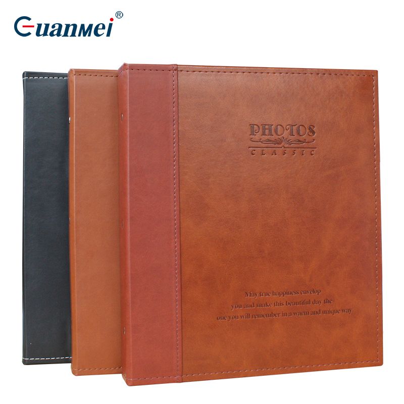 螺丝装牛颈纹PU皮封面8寸覆膜粘胶相册20张(带盒)