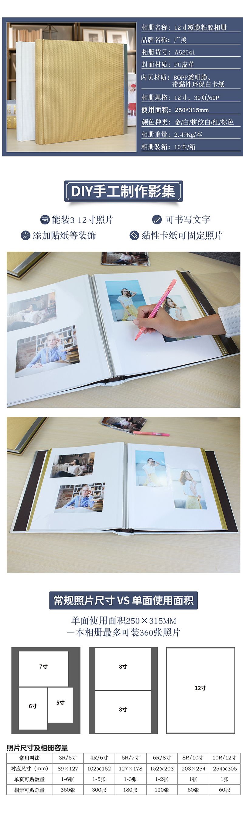 30页圆背珍珠皮螺丝装白卡粘贴内页相册(315*325mm带盒)